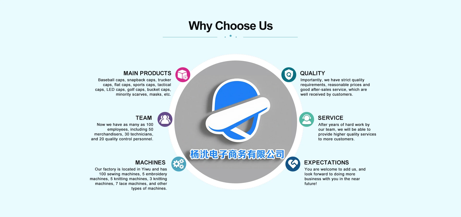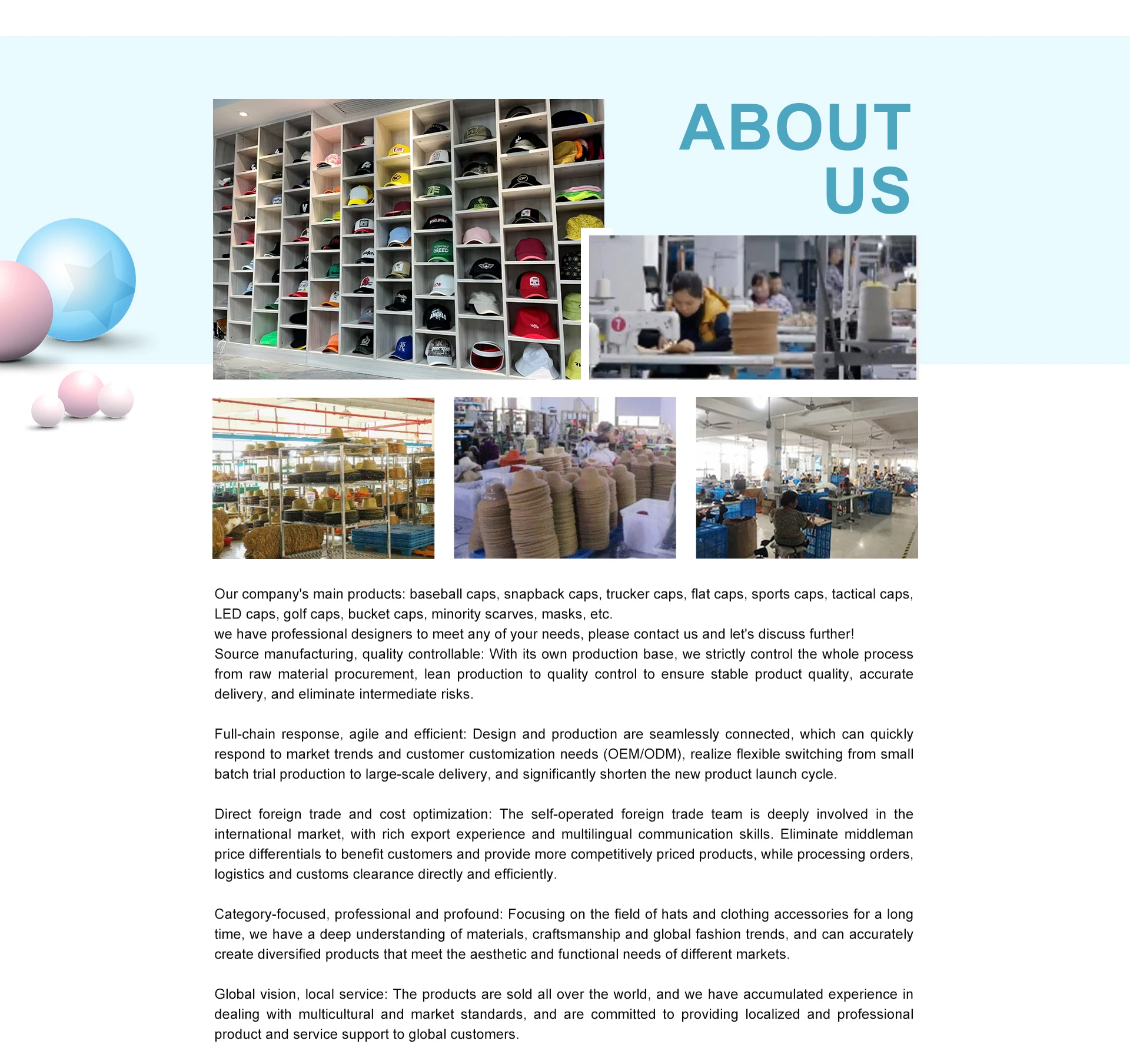 Productos principales:Gorras de béisbol, sombrero de cubo, sombrero de paja, bufanda, Máscara
